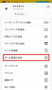 3.表示されたメニューから「ホーム画面に追加」を選択してください